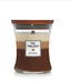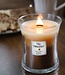 Deze geurkaars geeft door zijn brede houten lont een brede v