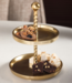 De RM Fallon Etagère is compact en elegant, perfect voor het serveren van hapjes of zoetigheden in klein gezelschap. Het goudkleurige aluminium geeft een moderne en luxe uitstraling, terwijl het fo