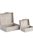 Op zoek naar een stijlvolle opberger die ook nog eens een eyecatcher is in je interieur? De Hazael beige suede box met gouden handgreep is precies wat je nodig hebt. Deze grote box is handgemaakt van h
