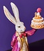 Vier Pasen op een speelse manier met deze vrolijke paashaas! De haas staat op een geglazuurde donut en houdt trots een taart omhoog – een echte eyecatcher voor in huis. Perfect voor op een kast, venster