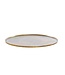 Mooie strakke platte metalen schaal in het antiek brons met een klein opstaand randje.