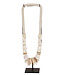 Laat je betoveren door de charme van Indonesië met onze handgemaakte schelpenketting, stijlvol gepresenteerd op een uniek metalen standaard. Elke ketting is vervaardigd uit zorgvuldig geselecteerde zeeschelpen, door d