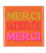 Dit oranje tegeltje met het woord Merci in verschillende kleuren letters ..