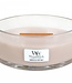 Geurbeleving: zachte vanille bloesems, gemixt met tonen van zeezout en jasmijn. Deze geurkaars geeft door zijn brede houten lont een brede vlam en een zacht knapperend geluid zoals een open haard. Verkrijgbaar in diverse formaten.
