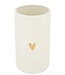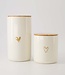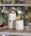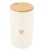 Maak je keuken compleet met deze stijlvolle voorraadpot van Zusss. De pot heeft een warme witte kleur en een subtiel goudkleurig hartje, gecombineerd met een natuurlijk houten deksel. Zo berg je je keukenaccessoires netjes op